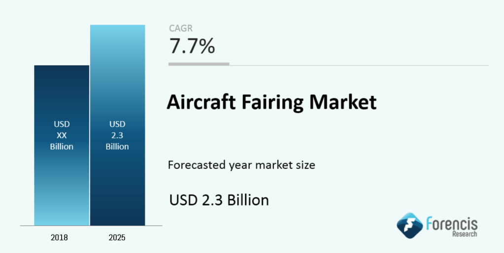 The Global Aircraft Fairing Market is estimated to reach USD 2.3 Billion by 2025 at a CAGR of 7.7%, observes forencis research (FSR).