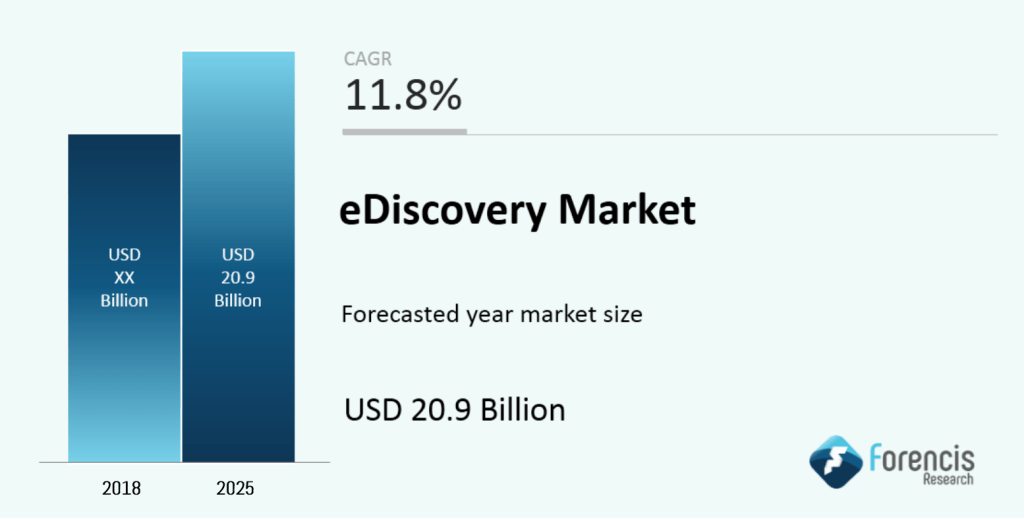 The Global eDiscovery Market is estimated to reach USD 20.9 Billion by 2025 at a CAGR of 11.8%, says forencis research (FSR).