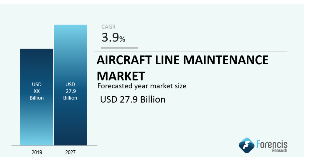 The Global Aircraft Line Maintenance Market is projected to reach a value of over USD 27.9 Billion by 2027 at a CAGR of around 3.9%.