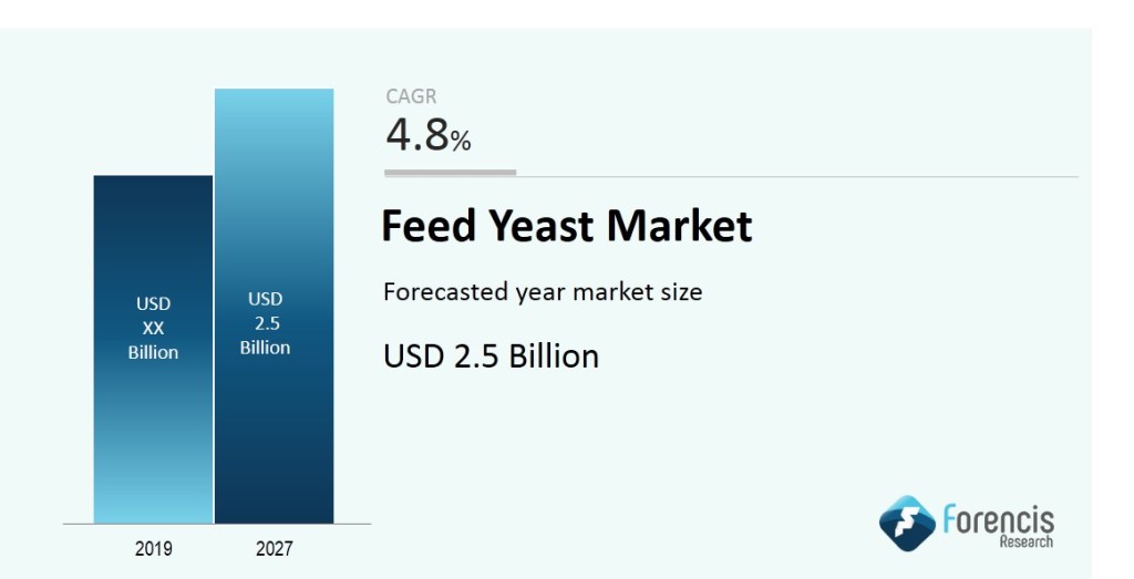 The Global Feed Yeast Market is projected to reach a value of over USD 2.5 billion by 2027 at a CAGR of around 4.8%.