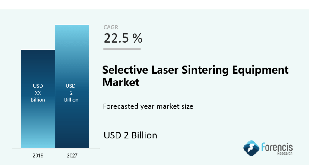 The Global Selective Laser Sintering Equipment Market is estimated to reach USD 2 Billion by 2027 at a CAGR of 22.5%.