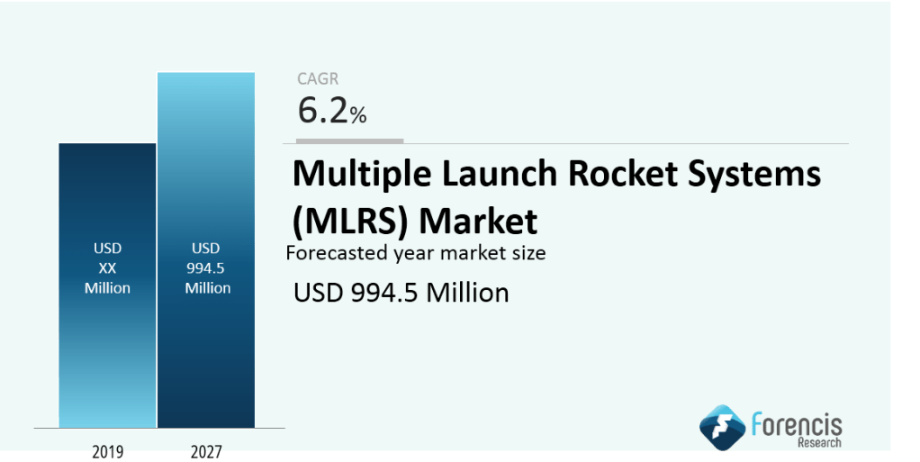 The Global Multiple Launch Rocket Systems (MLRS) Market is projected to reach a value of over USD 994.5 million by 2027 at a CAGR of around 6.2%.